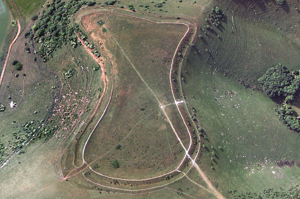 There’s a wonderful moment when you drive North along the A34 that your vehicle springs into an ancient landscape. You curve through a cutting, pass between rows of trees and burst out into the open in the Bronze Age. The road passes directly through Seven Barrows, a string of ancient burial mounds formed in an arc. And at that moment, there ahead of you, sensed rather than seen, is the ditch-and-bank earthwork of the hillfort atop Beacon Hill, an almost conical mound rising out of the fields and dominating the skyline in a way that belies its low elevation. It’s comparable to that spot on the A303 where your car breasts a rise and there is Stonehenge – or it would be if the road went right through the stones.