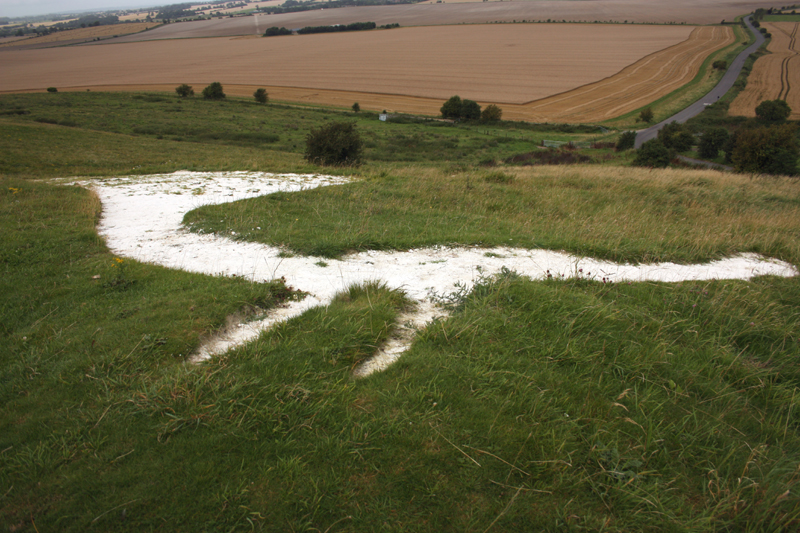 There are, however, several ‘lost’ horses and many of those newer figures may well have replaced older ones as happened at Westbury. I find it hard to believe that the ancients who shaped the North Wessex Downs with their hill forts, henges, farms and burial mounds, missed the opportunity presented to them by the bright chalk just beneath the surface. Several of the horses mark the slopes close to hill forts and barrows, and the association is a tempting one to make.