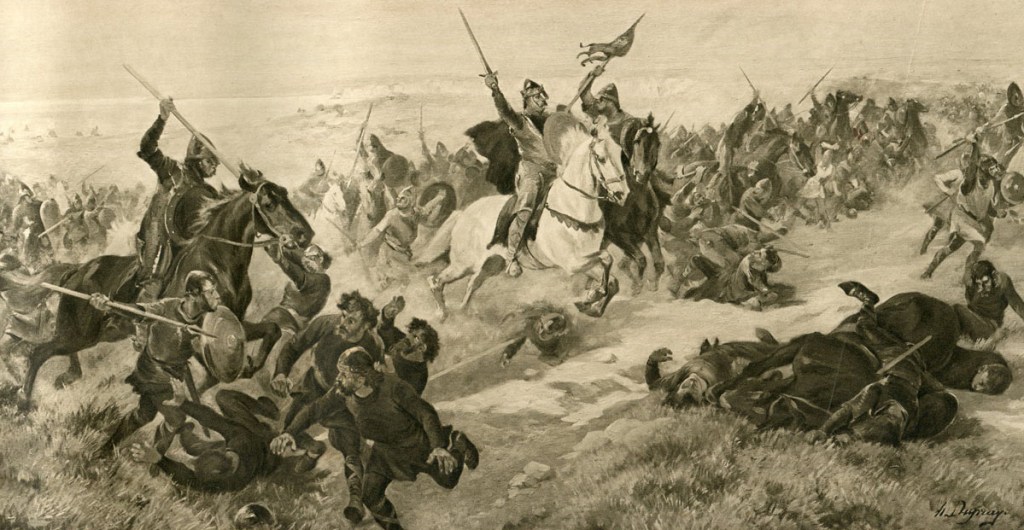 The first thing we had to do was decide how we were going to decide on a process that would enable us to divide up the writing, and stop ourselves from pulling in separate directions. Given that there were two of us on board, it meant that we could cover both the Norman and Saxon sides to the 20 years before Hastings, and the natural choice was for one of us to write a Norman POV and the other, Saxon. One of the characters had to be William (we knew that the eventual publisher of the Oath and Crown books was looking for a novel that specifically featured William). It would have been obvious to make the other POV character Harold Godwinson, briefly King Harold II of England, and defeated by William at Hastings – but perhaps too obvious, and not giving us the opportunity to explore a wider cross section of society. It would be a shame not to show the events from a female perspective, especially as women in Anglo-Saxon England enjoyed a very different status to their Norman counterparts. Jules came up with Ælfgifa, one of Harold’s younger sisters, about whom intriguingly little is known, and I believe it is this character (as well as Jules handling of her) that is perhaps Oath and Crown’s most striking feature. We decided to start off writing one POV each.